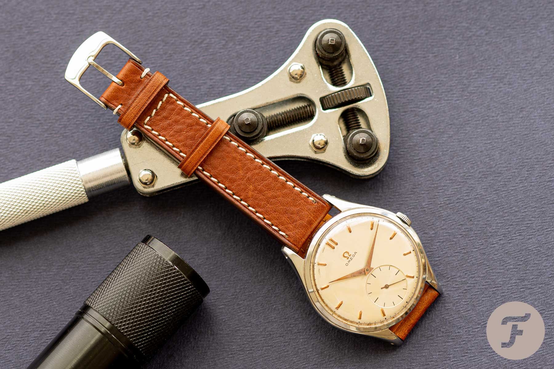 While the Highley Leather Strap was a refreshing piece, my favorite of the bunch is this one: the Besford Premium Leather Strap. It is nothing extraordinary really, but a beautiful, handmade vintage style strap. The kind that every watch fan should have in their collection. The strap works well with any watch, be it modern or vintage. I paired it with my Omega Jumbo, and the look was just perfect. My strap came in a chestnut color, which might look brighter on my photos than on the site.