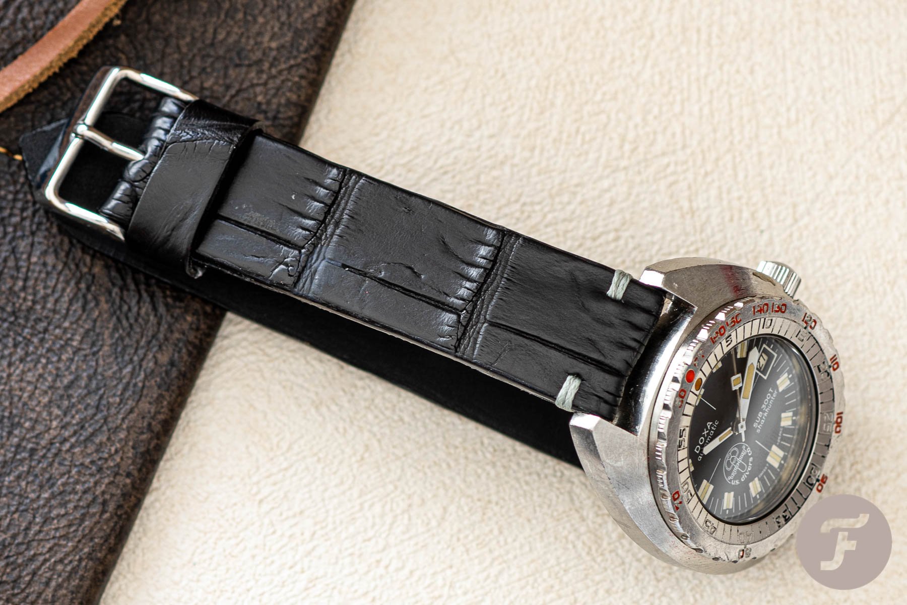I got a medium size strap which is 125/80mm but of course, the sizes run from XXS (yes, two Xs) to large or even into custom sizes where necessary. My choice for the alligator strap was the vintage Doxa Sub 300T Sharkhunter. Technically this is the worst choice as this is not a water-resistant strap. Though I doubt my ancient Doxa is water-resistant, I otherwise liked their alligator’s look with the vintage diving case and black dial. As far as the price is concerned, you are looking at a little over €220 (not a budget price). However, when it comes to exotic straps, you rarely shop for a bargain. Not to mention that the leather comes from an Italian tannery with EU certification. All in all, this is a lovely and somewhat classy strap, even on the toughest watch in your collection.