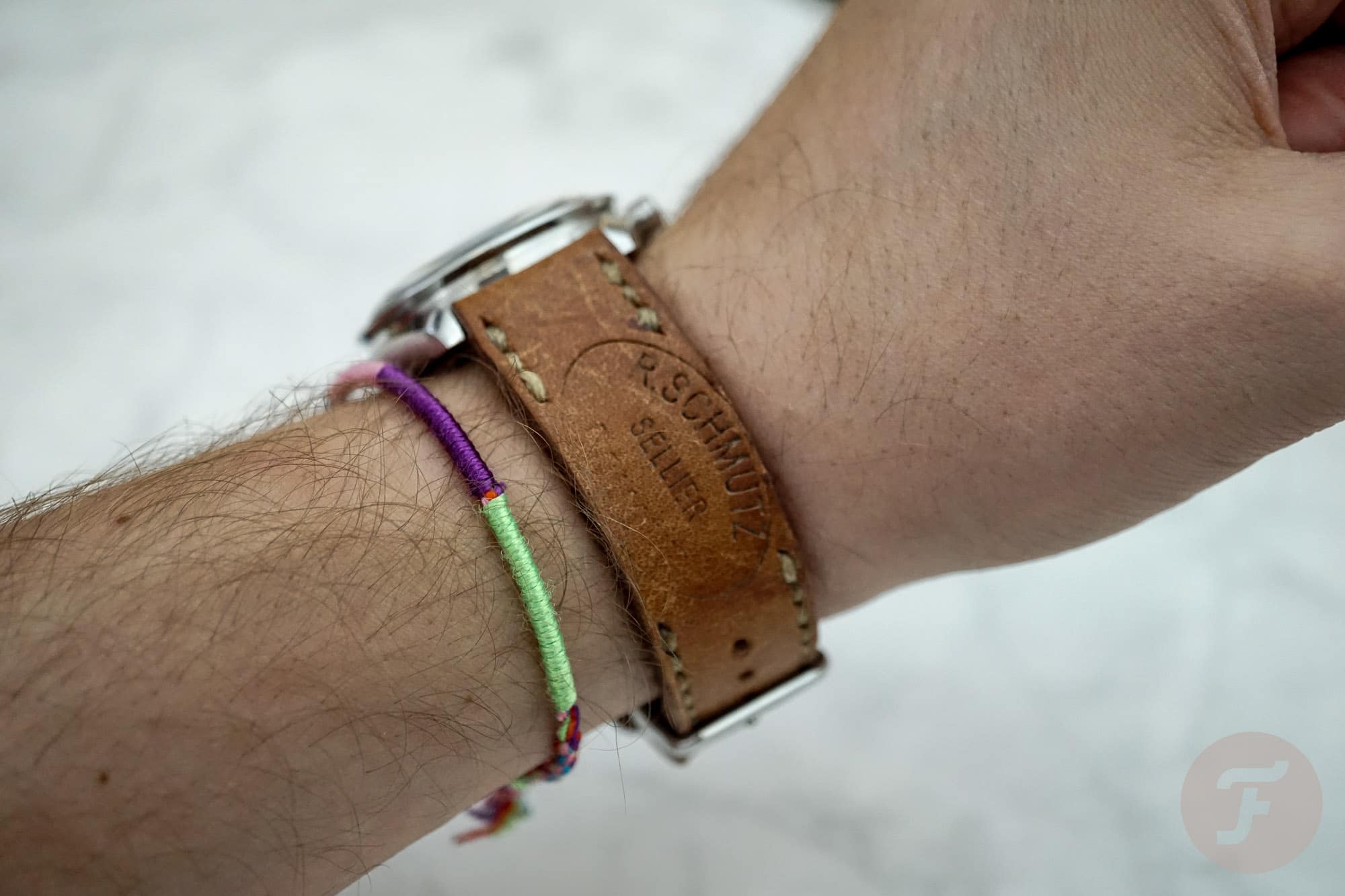 You will find all the different measurement FinWatchStraps offers with these straps on their page. Due to the straps being thicker and larger I’d suggest that you only use them on larger watches. They break in eventually and become pretty comfortable actually. But they look odd on a smaller watch even if the lug width is the right size. As far as the price goes, you have to pay €159,96 (inc. VAT) for a Swiss ammo strap. Now, as the photos show, some of the stitching is “missing” on the strap, this is no accident. Every ammo pouch has markings and stamps in them. These stamps are on the top of the strap and stitching over it would ruin them, hence there aren’t any. Does this make it less sturdy? Absolutely not. It, however, adds a certain character to the strap.
