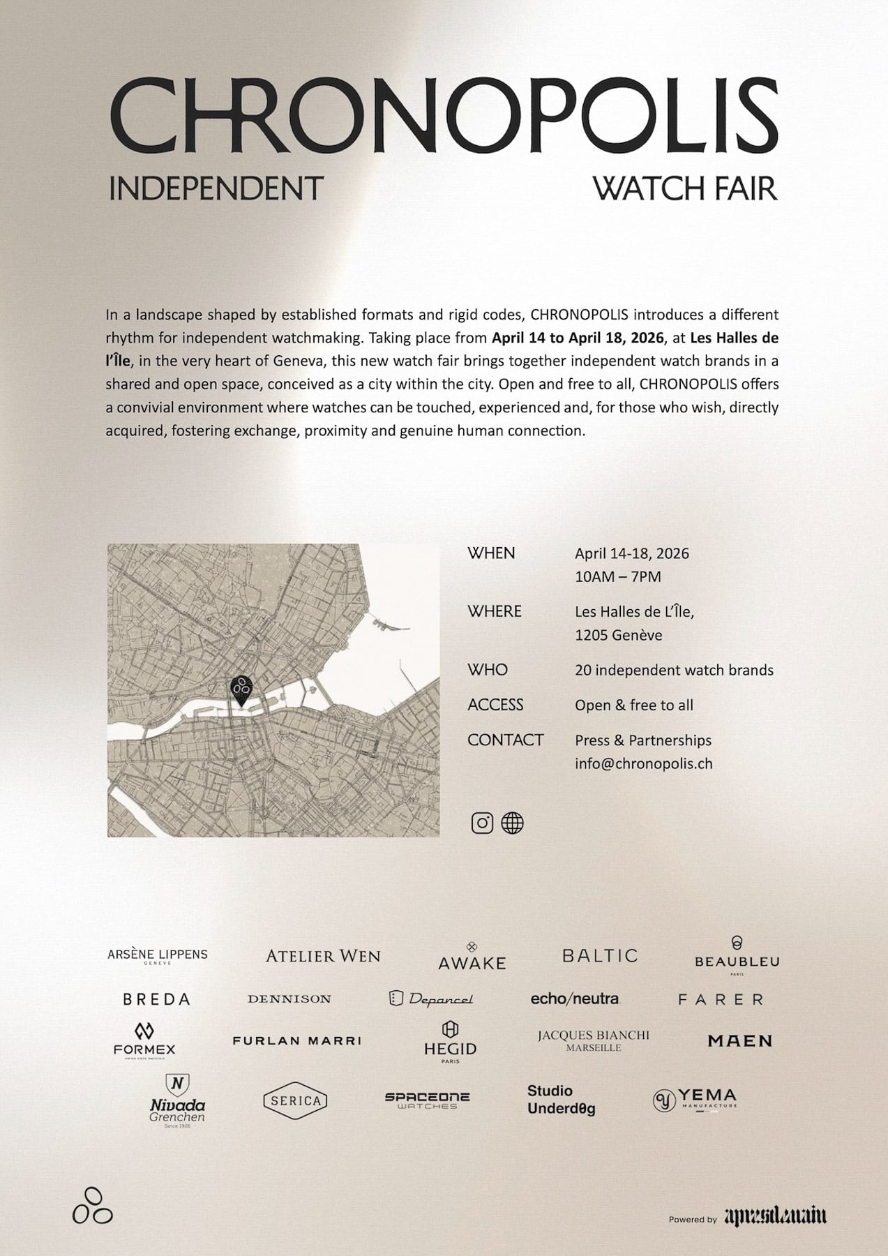 Then, there’s Chronopolis, a newer, more curated addition to the week. It leans even further into the independent side of watchmaking, showcasing brands and creators who operate on the fringes of the mainstream. It’s the kind of event where design experimentation and unconventional thinking take center stage, and where you might stumble across something completely unexpected. Exhibiting brands include: