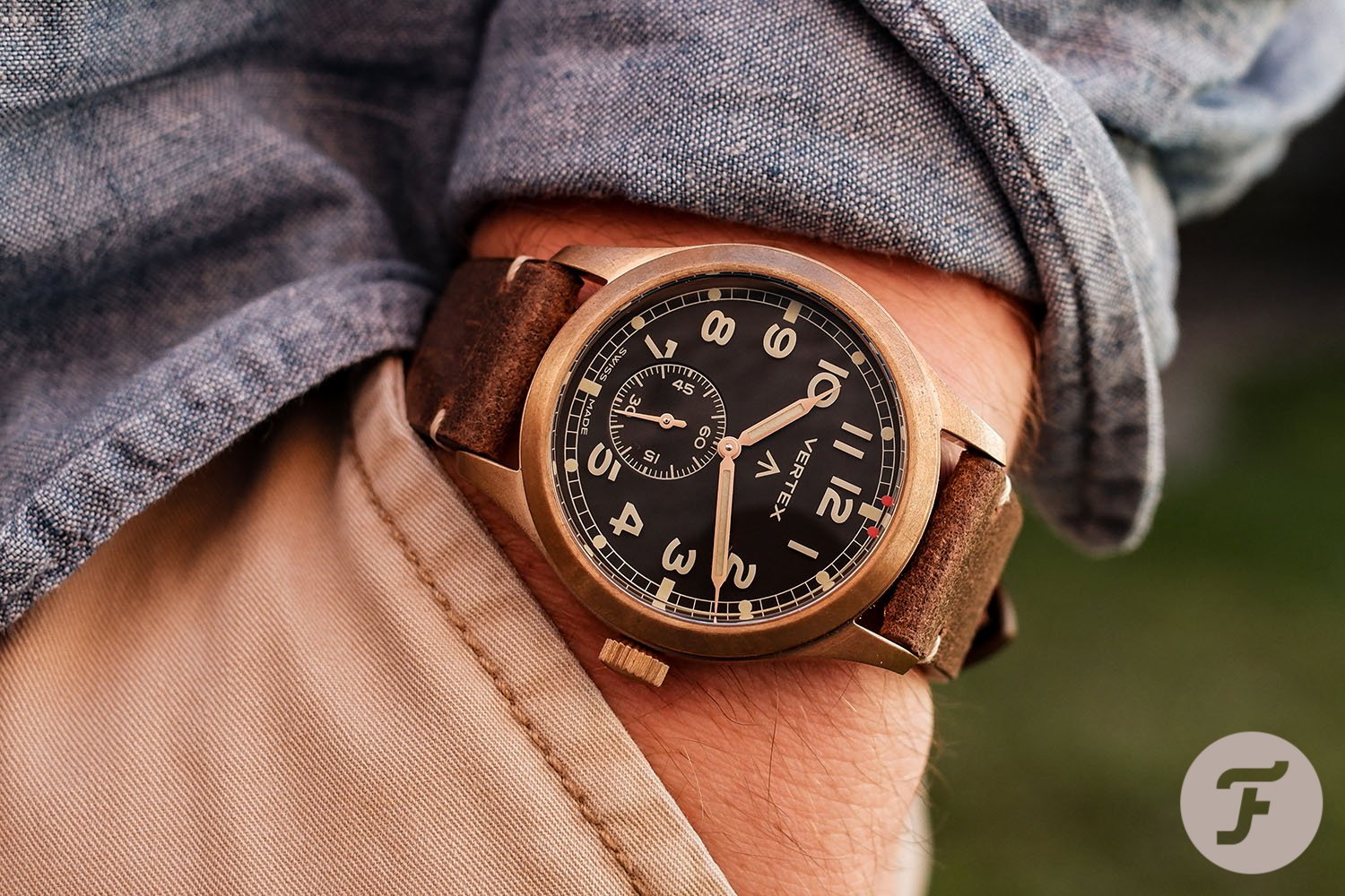 It’s hard to think about bronze watches and not have Vertex come to mind. The recently rebirthed brand was made famous in its past incarnation for having created one of the infamous “Dirty Dozen” watches. Brought to life once again in 2016 by the great-grandson of the brand’s founder, Vertex has embraced the old-school military aesthetic and brought it to life with a modern twist. The brand continues to go strong with a fantastic catalog of simple yet charming watches that boast some of the best lume out there. With markers carved of solid blocks of luminous material, it’s no surprise. Vertex made waves with its M100 field watch. At 40mm in diameter and just 11mm thick, it falls into a sweet spot in terms of size and slots into the same category of daily-wear appeal as the Hamilton Khaki Field.