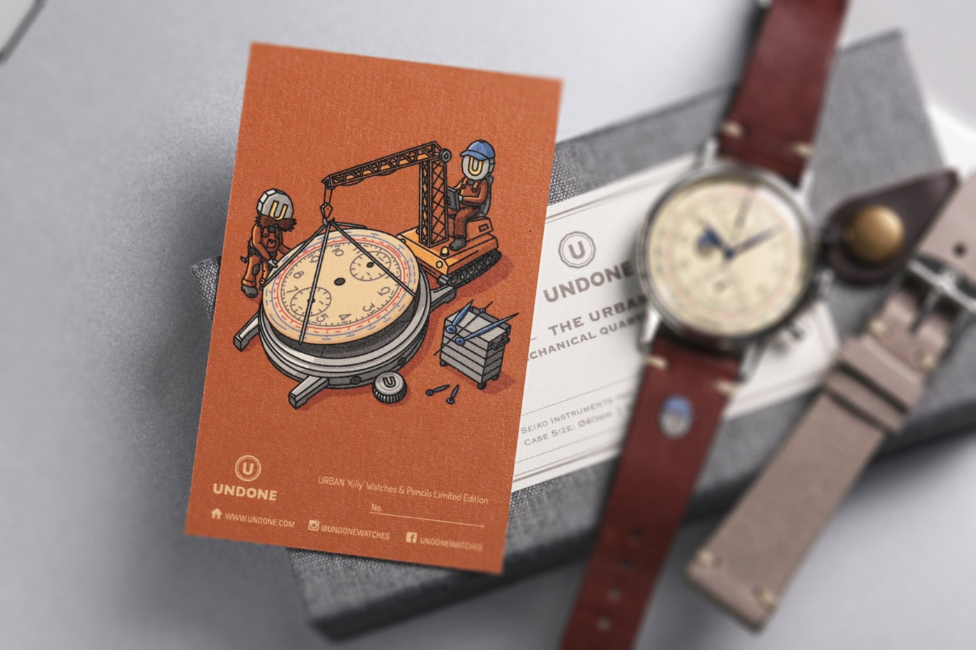 We are incredibly thankful to the watch community for their recognition of UNDONE’s endeavour in promoting the preservation of artisan spirits and traditions established throughout the golden era of watchmaking. Our URBAN ‘Killy’ Chronograph had the honour to be the inspiration for Teun’s latest art release which is featured in Fratello’s “Watches & Pencils” episode this month. In addition to illustrating UNDONE’s essence of tailor-making our client’s watches within our production facilities, it is also the debut of “Mr. UNDONE’, a fictional cartoon watch builder that was initially conceptualized together with our brand.