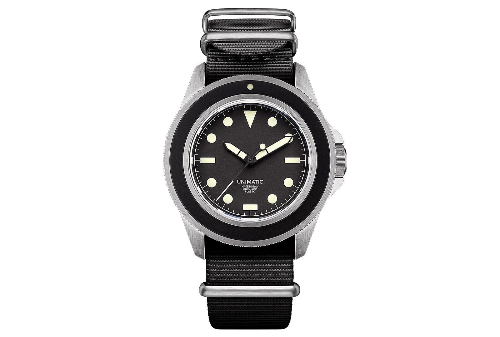 The 41.5mm case houses a reliable Seiko NH35 automatic movement and offers water resistance to 300 meters. A thick sapphire crystal and solid construction reinforce its tool-watch credentials. Despite its contemporary look, the U1 remains highly functional underwater. For those who want something minimalist but still rugged, Unimatic delivers a refreshing alternative. €750–815