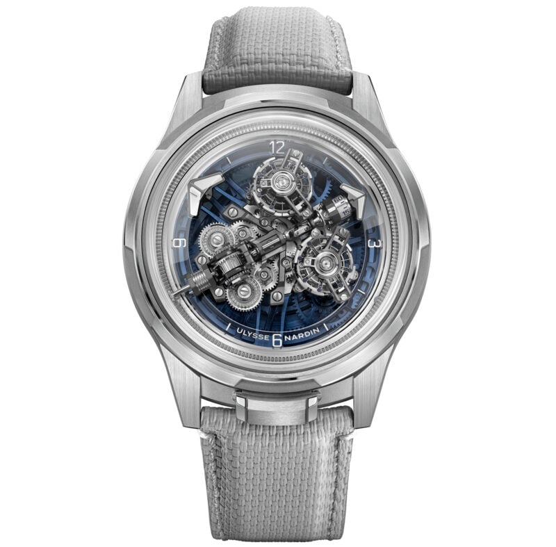Ulysse Nardin can be seen as the leading pioneer of Nouvelle Horlogerie. The Freak, which debuted 25 years ago, was a radical watch that served as an encouragement and inspiration for brands like MB&F and Urwerk. At Watches and Wonders 2026, the 50-piece limited-edition Super Freak (ref. 2520-500LE-3A-BLUE/3A) clearly sits in the tradition of the experimental, exuberant watch and presents itself in a more sophisticated, complicated way. Compared to earlier models, the case has been slightly reduced in diameter and refined in its proportions. There’s also an updated bezel-locking system that integrates more cleanly into the overall design. As you’d expect from a Freak, the bezel lets you set the time, while the case back winds the movement.