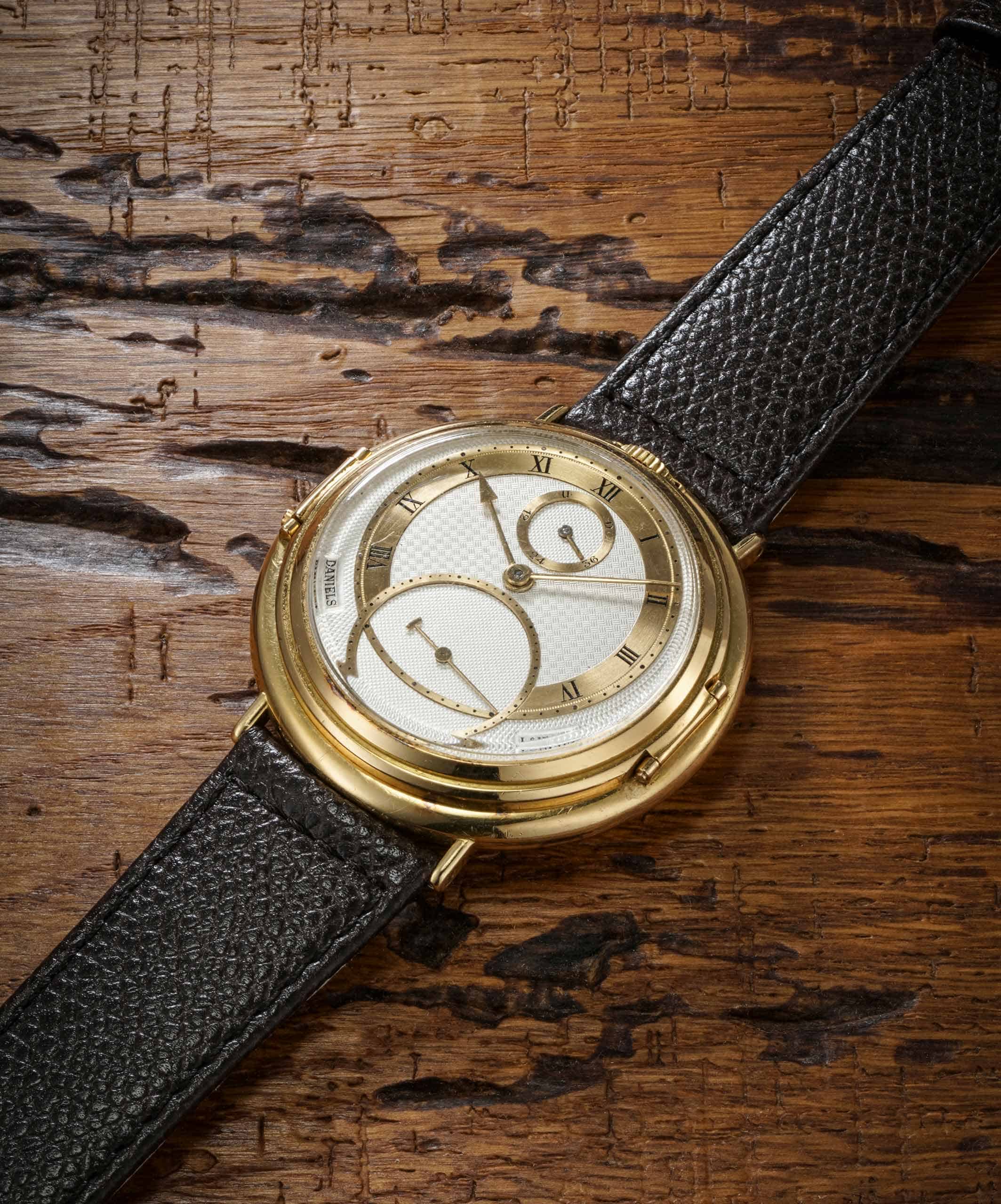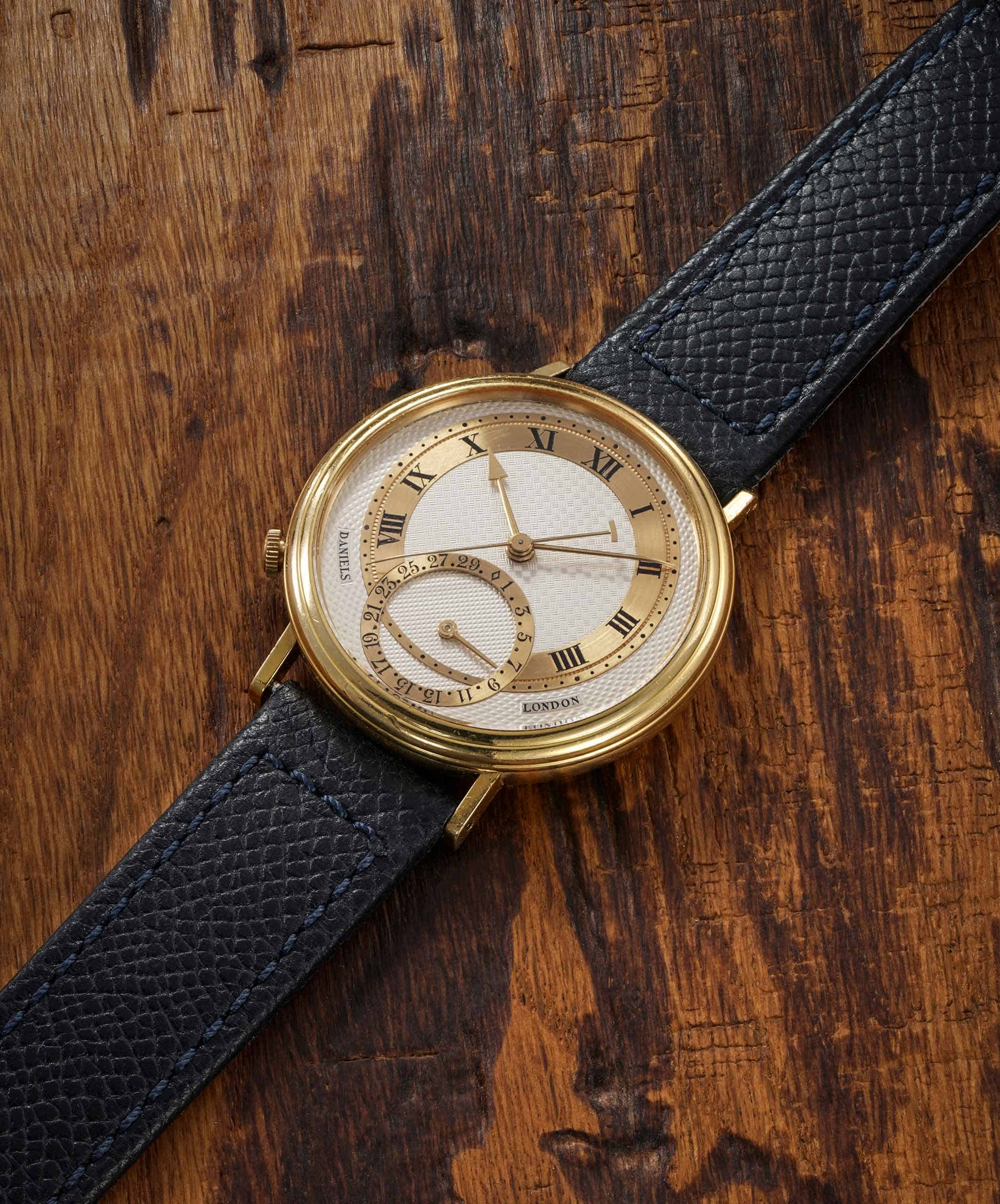 He left school at age 14 and found a job in a mattress factory while repairing watches in his spare hours, often going from door to door to offer his services. During his army service in Suez in 1945, he continued repairing watches for fellow soldiers, earning so much that he scarcely needed his army pay for two years. Once demobilized, with just £50 to his name, Daniels set up a business. He went on to create a series of increasingly ingenious mechanical watches deeply inspired by the work of Breguet. He taught himself how to craft every single component by hand — later known as the Daniels Method. Later, he attended City University in London to study horology formally. What began as a childhood fascination had become his profession.