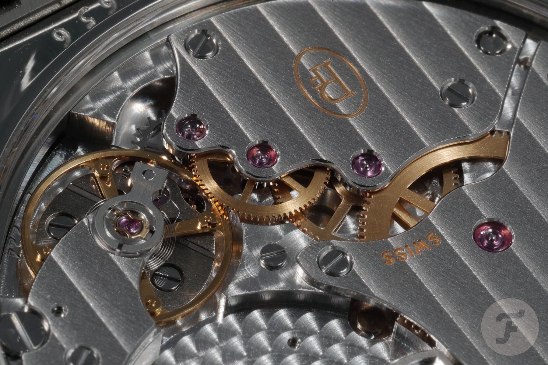 Parmigiani’s base movement, the PF703, is an impressive piece of engineering. It offers a micro-rotor (the name of the watch already disclosed this) and a good dose of traditional finishing. Viewing the watch’s case from the side hints at the fact that it is an ultra-thin movement.