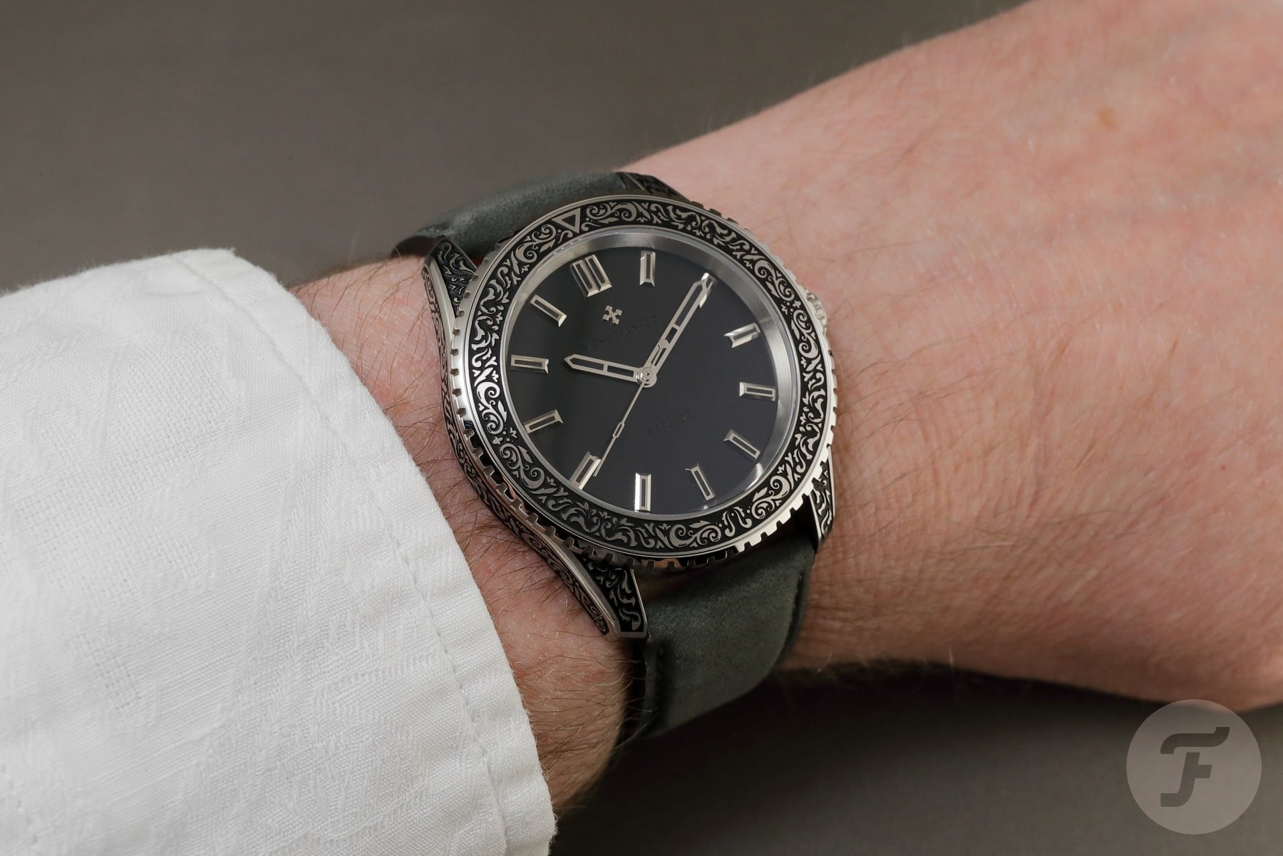 Later, I stumbled upon the brand Magrette, based in Auckland, New Zealand, which has a few models with engraved cases in its portfolio. An artist from New Zealand manually decorates these watches with motifs originating from Maori culture. I find these watches interesting, and they are relatively affordable. However, this brand just didn’t produce a watch that really made me pull the trigger.