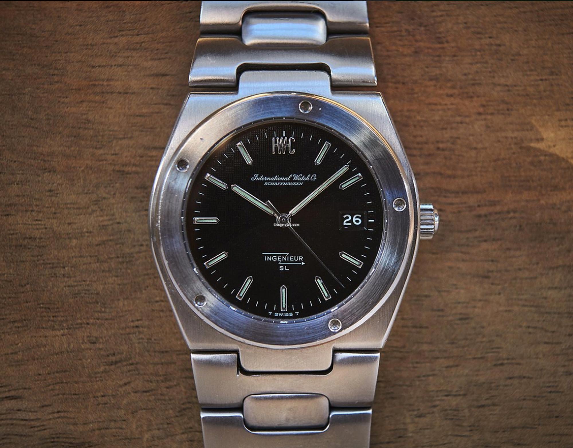 Nonetheless, we know that AP makes a good watch, and the Audemars Piguet Royal Oak Military Dial is likely no exception. Despite its appealing (to me) but unpopular 36mm case, these watches were available on that famous bracelet, and you even get those confounding “screws” in the bezel. And despite lume that looks like something from Seiko, and loud branding that reminds me of a similar vintage Hamilton Khaki, you know you’re wearing a Royal Oak. Also, note the lume-filled hands and the arrow-tipped sweep seconds hand; they’re something a bit different.