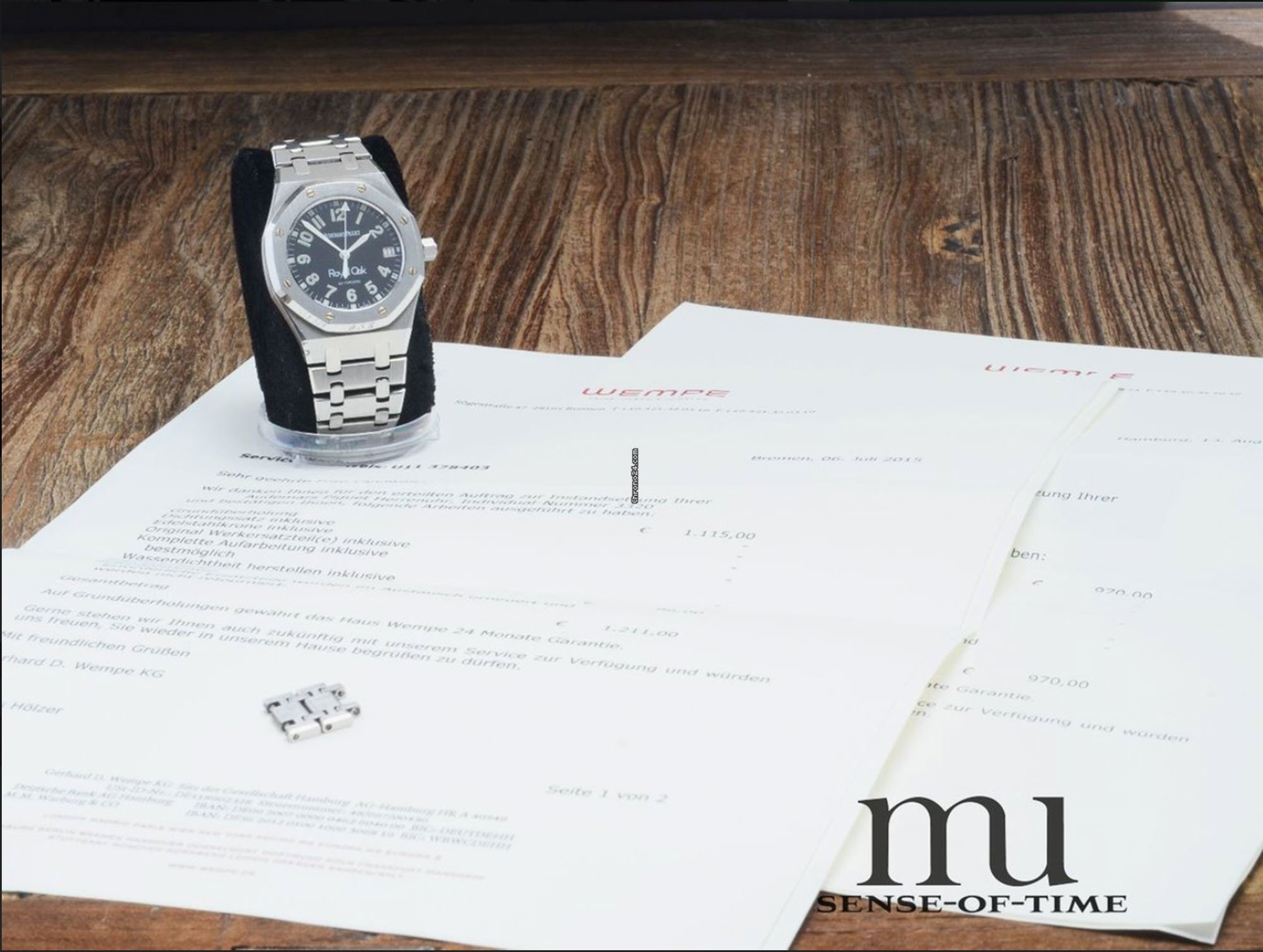 But if you’re worried about servicing your Audemars Piguet Royal Oak Military Dial, perhaps things will come running smoothly on today’s example from Schloß Holte, Germany (I had to look it up – it’s not too far from Paderborn!) via Chrono24. (The watch and photos are the property of the seller) This piece comes to us with Wempe service papers from both 2011 and 2015. The watch dates from 2000, so who knows if it’s seen more service! But the good thing is that the watch dealer gives you another 12 months of warranty. And with that, you get a no-dicker sticker of 13,490 Euros (for those unfamiliar with American used car colloquialisms, that means no negotiating!). You don’t get the box nor the papers included in that price, but this RO looks to be in nice shape aside from a bit of lume degradation on a couple of pips.
