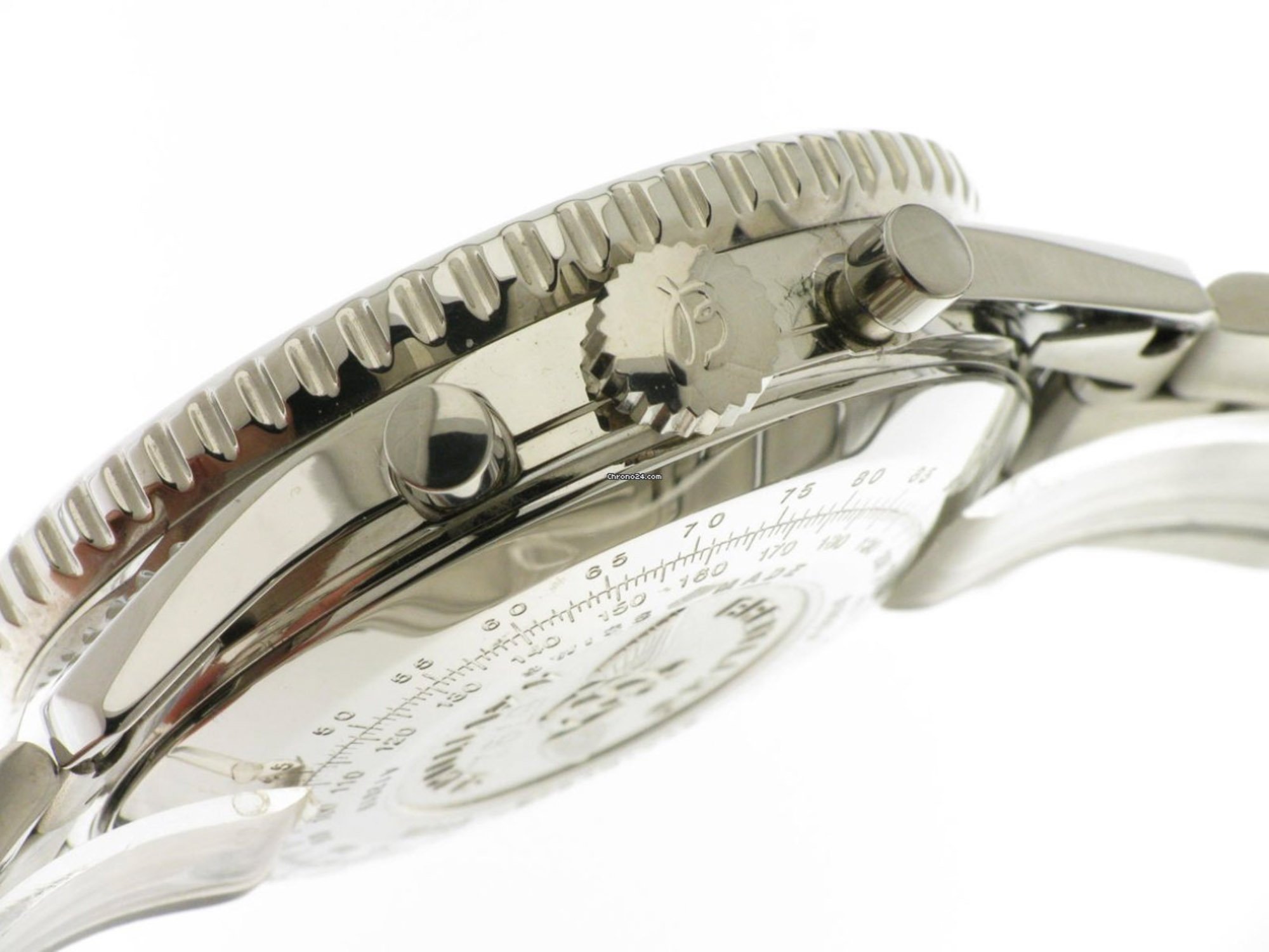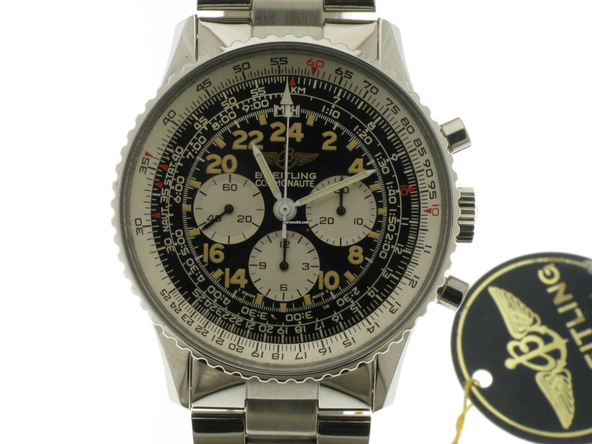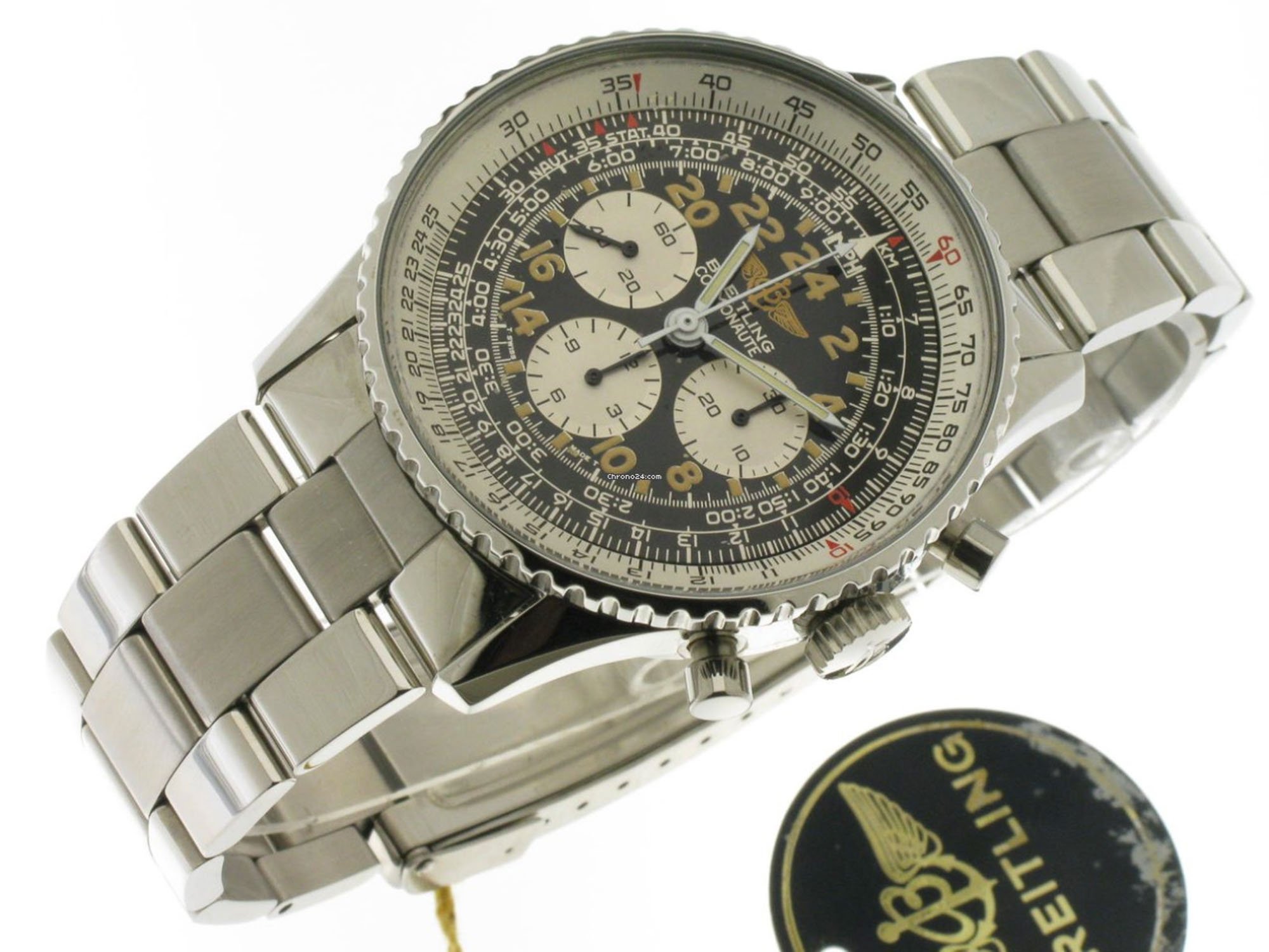 The Breitling Cosmonaute we have today comes via Chrono24 and from the land where there are currently more Paul Newman Daytonas than on our earth 50 years ago: Italy (the watch and photos are the property of the seller). From what I can tell, this watch is truly “new old stock” and not someone’s new, old stock which is typically the case. The chamfers are strong, the box, papers and hang tag are present and it even contains a cool oyster-style Breitling bracelet.