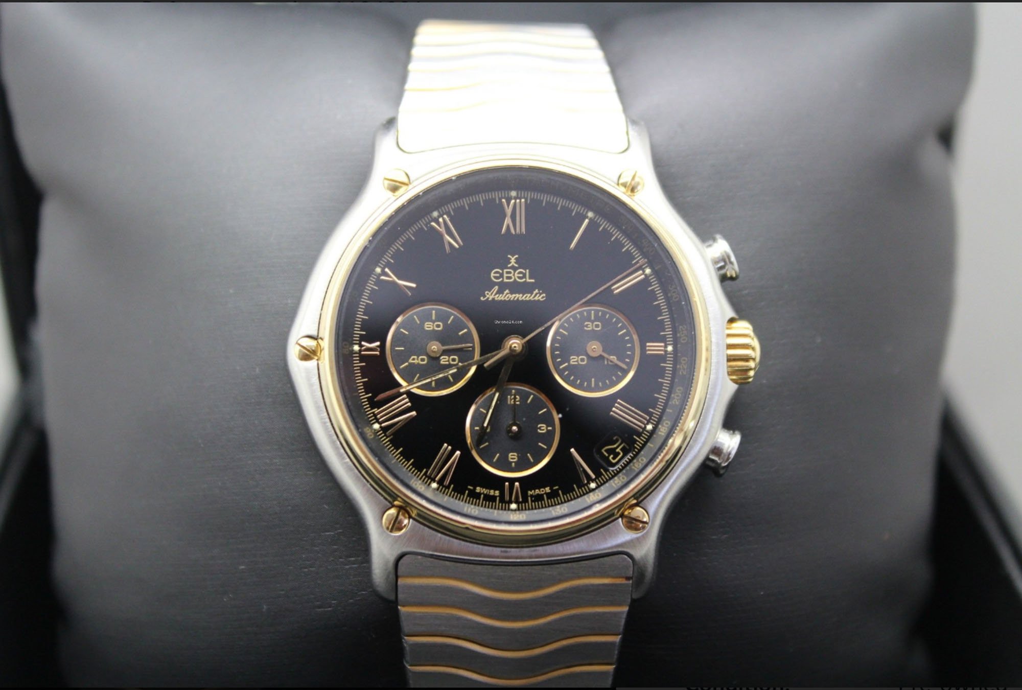 We know somewhat little about the Ebel 1911 Chronograph that’s featured here on Chrono24, aside from the fact that the 39mm watch supposedly runs well and it looks to be in beautiful shape. It’s also located in the knife capital of Germany, Solingen, and is being sold by a well-rated dealer who does seem to know his way around a camera (the photos are the property of the dealer and our header and white-dialed variant come from Catawiki). Now, my experience with an El Primero has been a bit like owning Sonny’s ride in later seasons, the Ferrari Testarossa. In other words, it runs fast, makes all the right sounds and breaks down a lot. Then again, mine is a really old Zenith. But the real saving grace on this Ebel is that it costs $1,757 as of today’s exchange rates. That’s a lot of “smiles per mile” as we say in the business. And finally, while it’s been some time since Ebel has had its day in the sun, one has to believe that something this good looking will come back into vogue at some point.