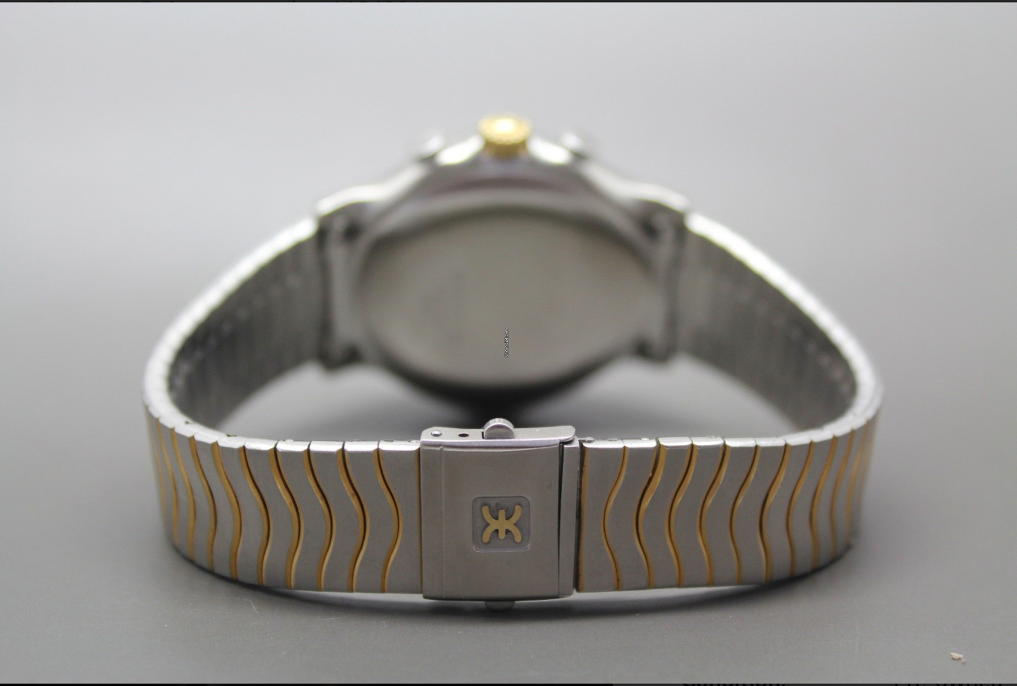 The model we feature today happens to look like an earlier model as it features the brand’s gorgeous Wave bracelet that, in addition to the iconic case shape, is a real hallmark of the period. Yes, it’s bi-color, so it’s not consistent with “the Don’s” all gold, so perhaps you’d be seen as a pretender. But that’s ok, as Johnson rolled around in a fake Ferrari Daytona Spyder in the earlier seasons, so he’s no stranger to nearly-there looks.