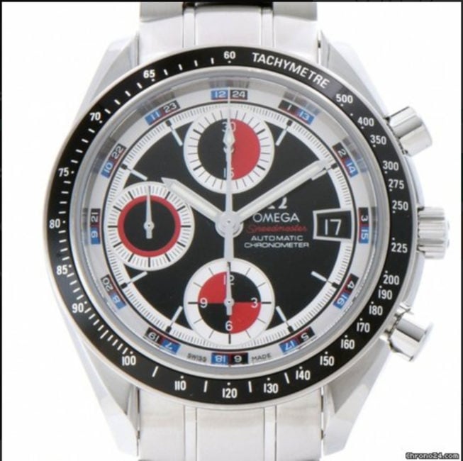 Watches like the Omega Speedmaster 3210.52 Casino Dial get relatively little respect and attention in the curmudgeonly Omega forums where Speedmaster collectors provide both correct and dubious information in mass quantities. The reason for this is that Speedy neckbeards tend to disqualify any namesake piece that lacks a hand-winding movement and/or a Hesalite (you risk losing your forum privileges – which you don’t really have until 100’s of inane posts – should you call it “acrylic”) crystal. And today’s watch, for good or bad, has neither. The 3210.52 was one of several Omegas that debuted in the late 2000s featuring the Caliber 1164 automatic with date, which is an expensive way of saying Valjoux 7750 that’s received a chronometer certification. At 40mm, it also contained a sapphire crystal and a user-friendly 100 meters of water resistance. Omega, being the good folks that they are, still show the watch on their site even though this watch seemingly went out of production a good 6-7 years ago. Get a good look there because these seller pics are somewhat grainy.