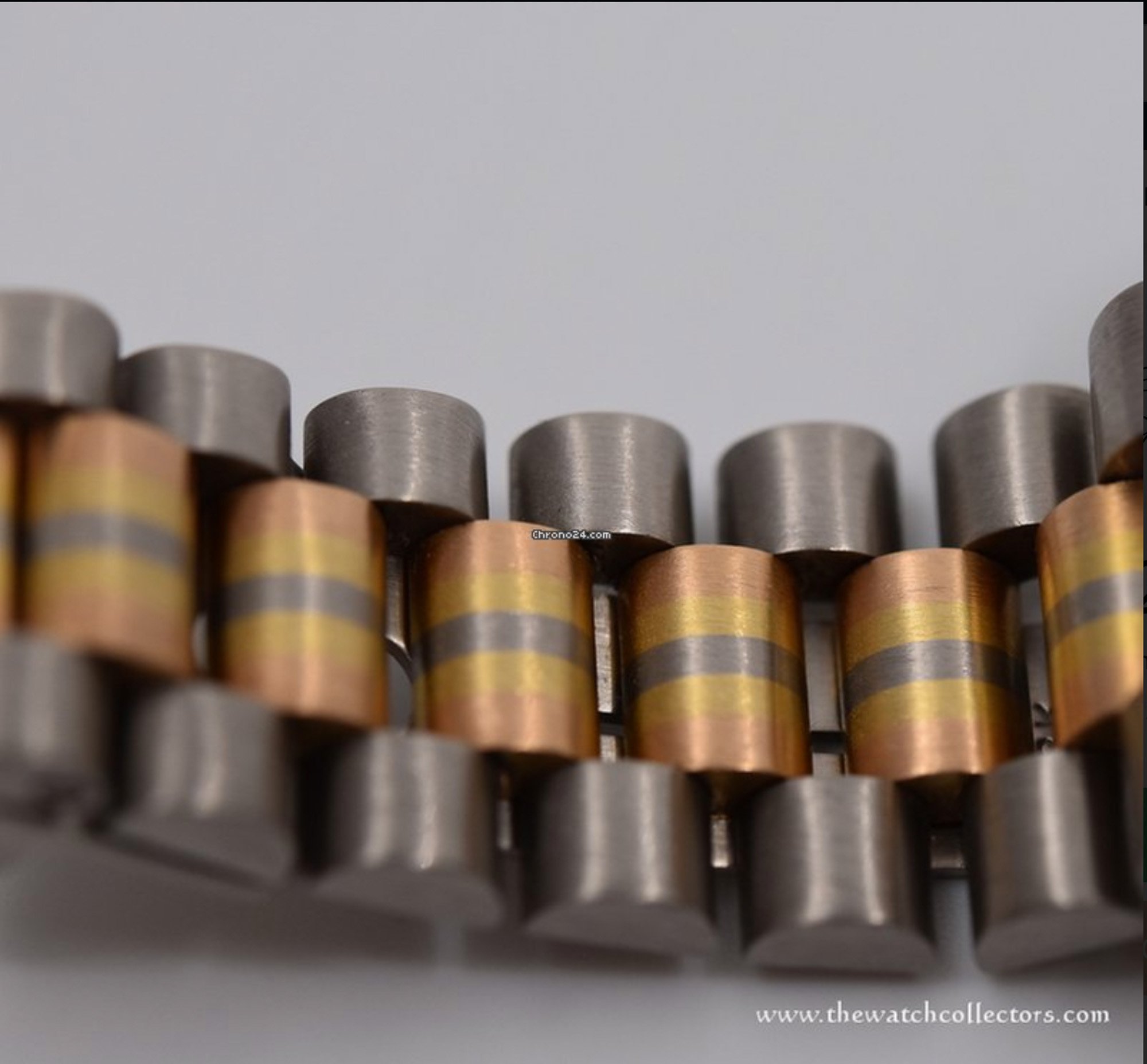 Sounding like it sprouted from Middle-Earth like some Tolkien-esque object of desire, the Rolex Day-Date Tridor was born during the decade when my two favorite baseball teams last won a World Series (Baltimore and Detroit…sigh): the 1980’s. The Tridor took a white gold-cased Day-Date, but brought a bracelet that showed that even stodgy Rolex wasn’t immune to the questionable tastes of the era. Rolex decided to clad a rainbow of rose, yellow and white gold right down Main Street (that’s the center link) and they called this concoction “Tridor”. Catchy, wasn’t it? They then offered up a yellow gold fluted bezel, a white gold crown and gave colorblind buyers the opportunity to throw just about any clashing dial onto the watch. Oh, and diamonds? Sure thing…I’ve seen this with diamonds on the bezels and the dials. Just go have a look on Google at the various combinations that were created during this period of designer drugs – astounding stuff, really. I can still recall seeing these new at places like Mayor’s in South Florida and while they weren’t my cup of tea, the metal work was done well. This is Rolex after all.
