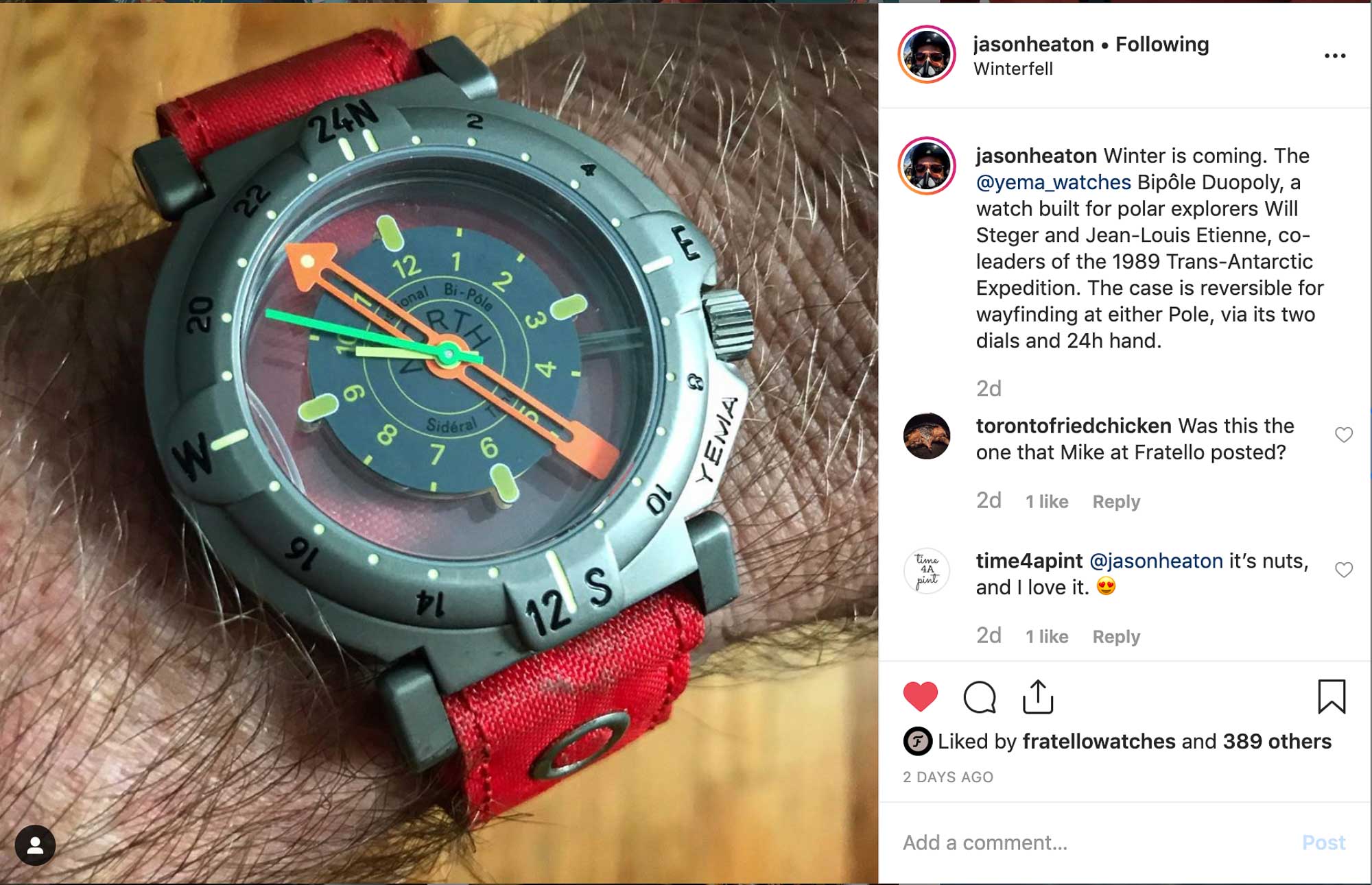 Before we get into the Rolex GMT-Master 16700, let’s spend a moment on last week’s subject, the Yema Bipole Duopoly. For $569, or less than most of you spend on a pair of city-bound retro mining boots, you thoroughly denied this French oddity with a crushing defeat to the tune of 60% calling it a Crying Shame. Ah but wait! While the 40-percenters clearly lost the battle, one such Wrist Game voter climbed the highest mountain because he chose to vote with his wallet! And that person was none other than Jason Heaton of The Grey NATO, Hodinkee, and other fame. Now Jason calls the eternally frozen state of Minnesota home and drives an old Land Rover, but I must say that he’d better up his beard game if he thinks he can sport this Yema with regularity. I can, on the other hand, relate to and support his wrist beard, though. Godspeed, Jason, and wear that Yema well. Just remember to have those seals checked before you dive into a Juicy Lucy.