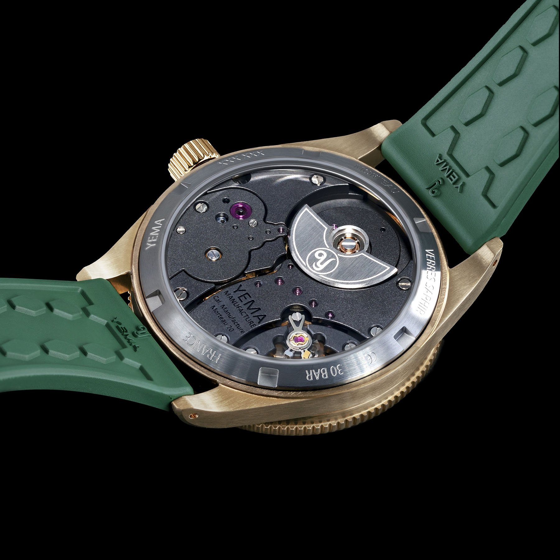Yema will produce 200 pieces of the dark gray Skin Diver Slim Bronze CMM.20 Limited Edition. All the watches will feature a unique LE number engraved on the stainless steel case back. Additionally, every watch comes with a five-year warranty card that displays this number.