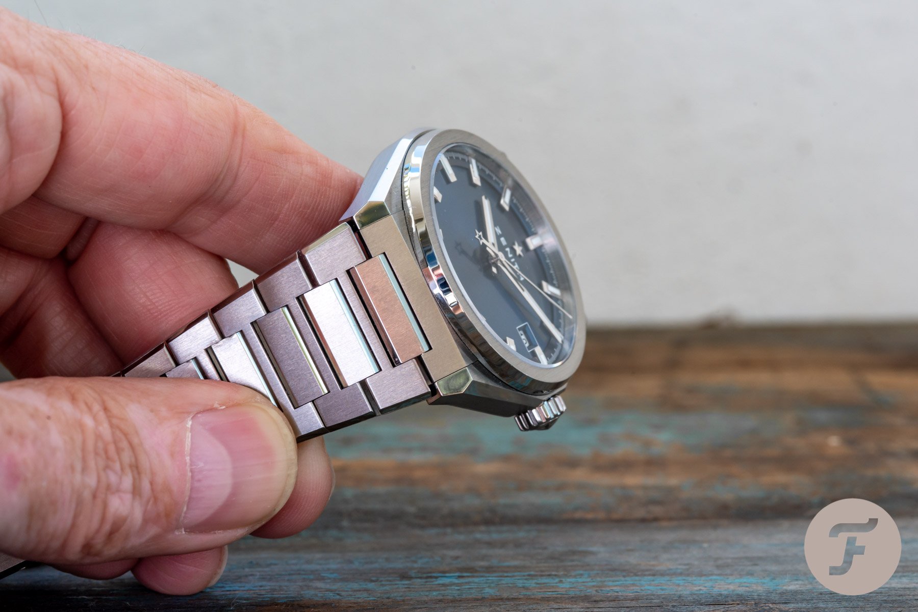 Shortly after its presentation, beginning of 2018, we had prototypes of the Zenith DEFY Classic in our office and studio for review and pictures. You’ll find Robert-Jan’s hands-on review here. Those were not models with a metal bracelet though. And here, I’d like to explain the (*) which I mentioned above. Technically the Zenith DEFY Classic is not an integrated bracelet watch. The bracelet is removable and could even be replaced by a leather or rubber strap. However, the construction of mounting the bracelet to the watch case is so ingenious that it’s hardly visible; the bracelet seems to be one with the watch case.